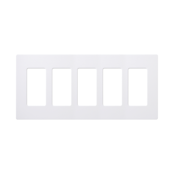 Placa de pared 5 espacios, para atenuador (dimmer), switch ó control remoto PICO inalámbrico CW5WH