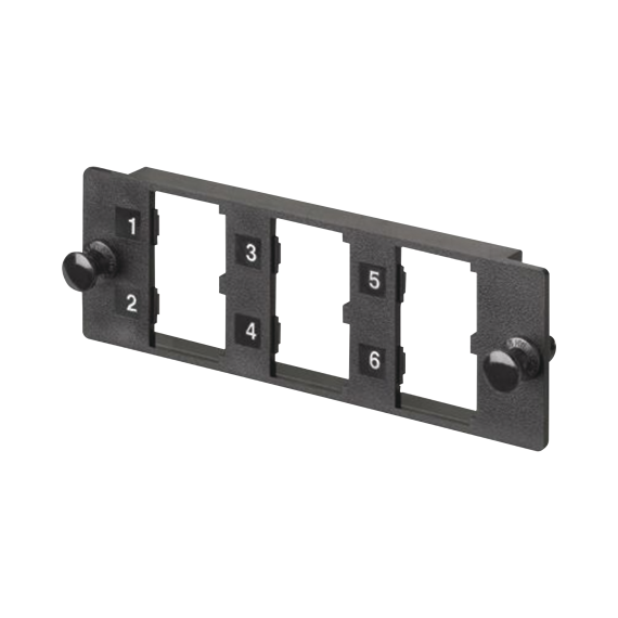 El panel modular multimedia es compatible todos los paneles Opticom. Cuenta con seis puertos para seis módulos Mini-Com® para aplicaciones UTP, fibra óptica y AV.