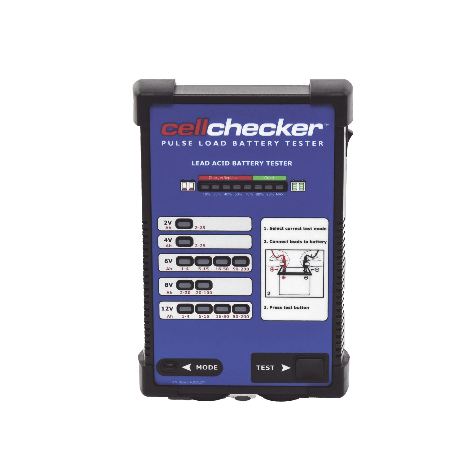 Cell Checker utiliza tecnología de carga por pulsos para proporcionar una prueba integral del estado de carga y la condición de una batería. En lugar de simplemente mostrar una lectura de voltaje, Cell Checker determina la capacidad de energía restante de una batería midiendo su capacidad para mantener los niveles de voltaje mientras está bajo carga.