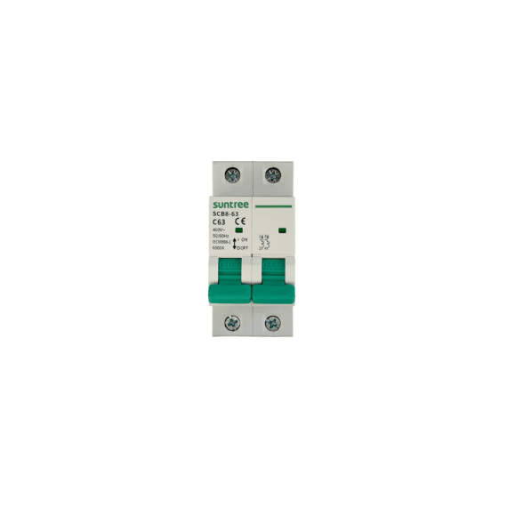 Interruptor Termomagnético 2P 32A para Sistemas Fotovoltaicos | 400Vca, Montaje Riel DIN SCB8-63C32/2P