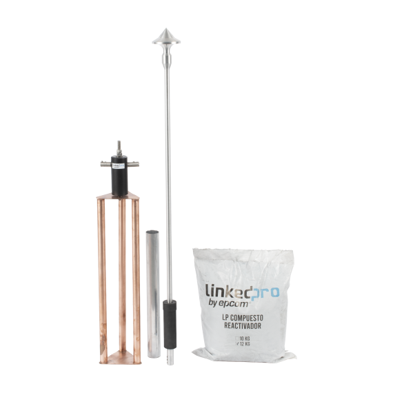 Electrodo fabricado en cobre con tratamiento electrolítico para obtener mayor conductividad, baja resistencia y durabilidad en terrenos agresivos.