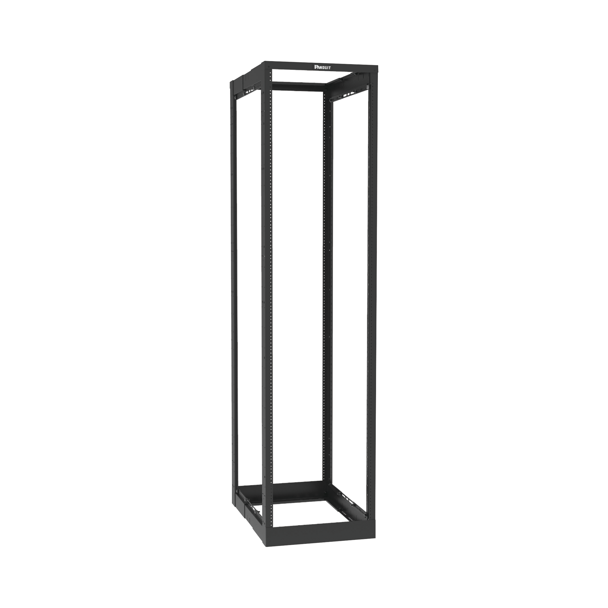 El Rack de 4 postes de profundidad ajustable admite profundidades de montaje de equipos de 23 a 42 pulgadas en incrementos de 0.5 pulgadas, para proporcionar una mayor flexibilidad con un solo número de parte. Los postes estructurales delanteros y traseros del rack son capaces de montar todos los organizadores de cables verticales Panduit y varios accesorios como unidades de distribución de energía, bajadas y soportes verticales de amarre.