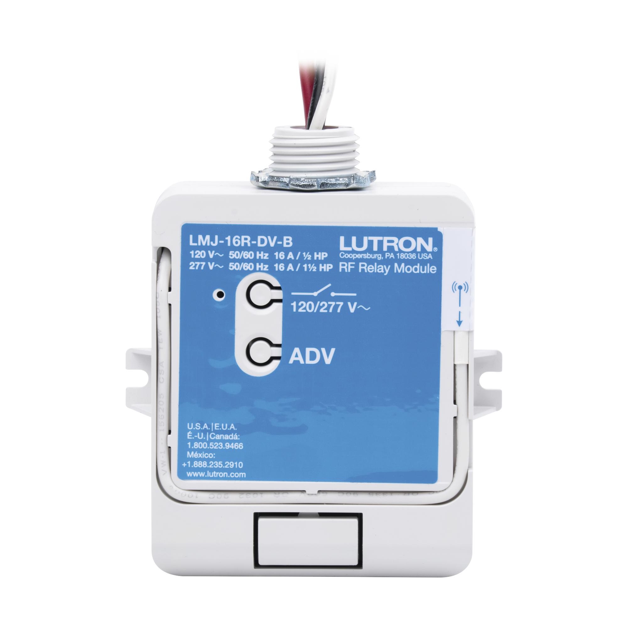 (RadioRA2) Relay control de iluminación, carga 16A, 120/277V, compatible con RadioRA2, RA2Select y RR3. LMJ16RDVB
