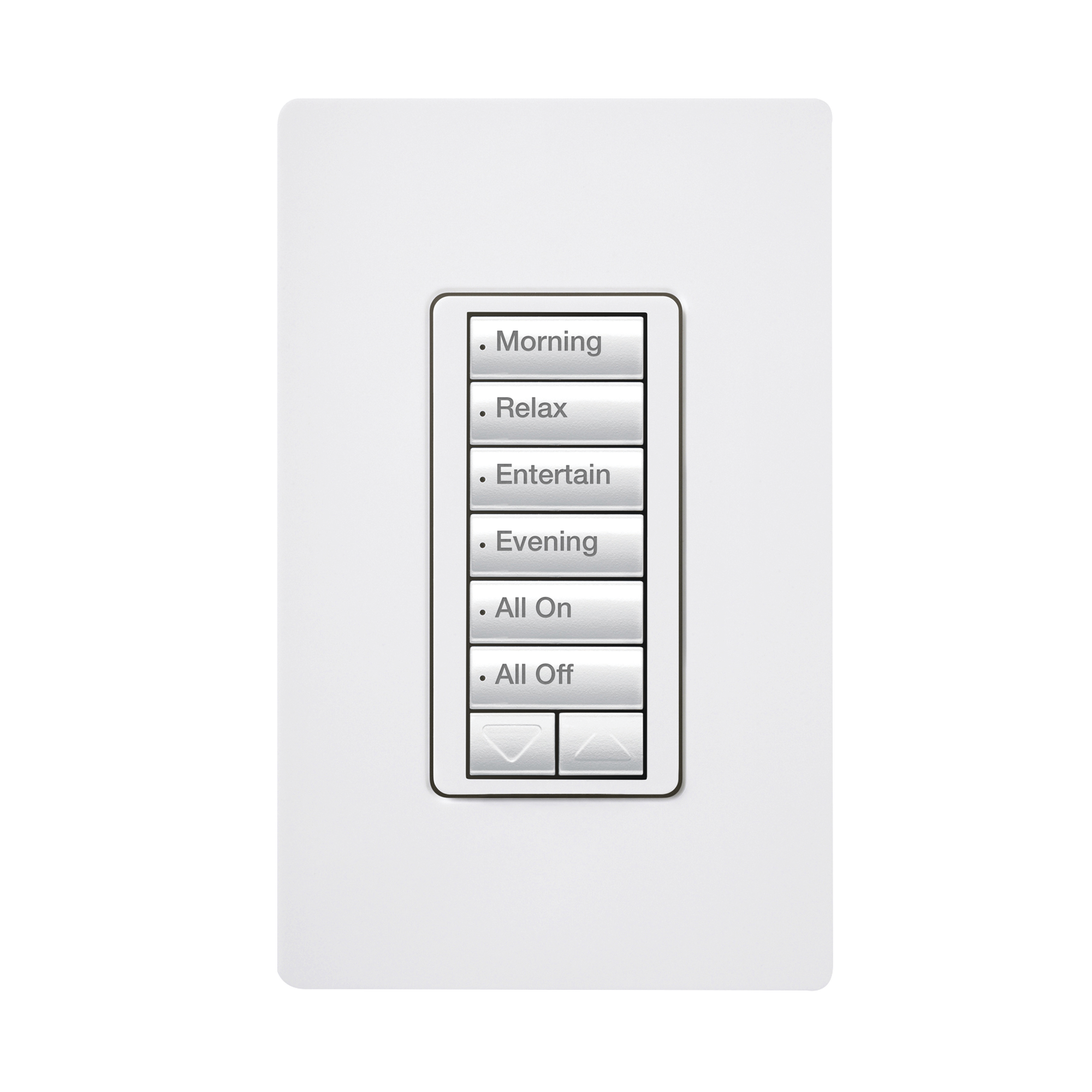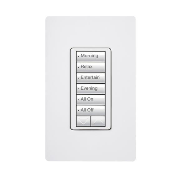 (RadioRA2) Teclado seetouch 6 botones, 2 botones subir/bajar, programe escenas diferentes en cada botón. RRDW6BRLWH