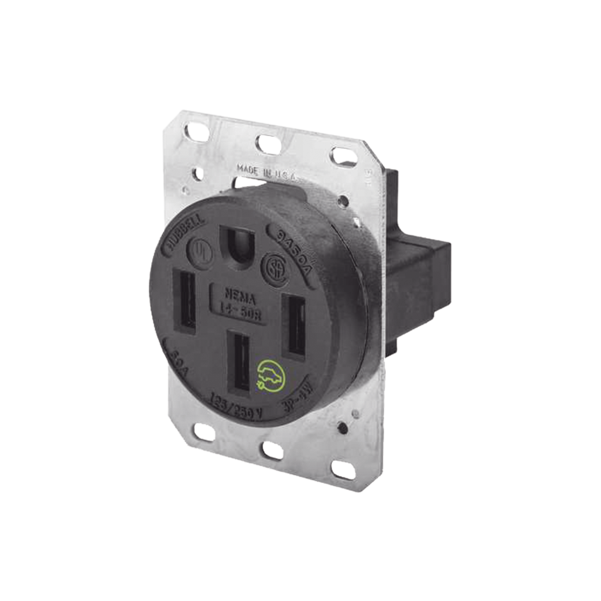 Receptáculo Recto de 50 A 125/250 V CA 3 Polos 4 Hilos (Nema 14-50R). HUB-HBL-9450A