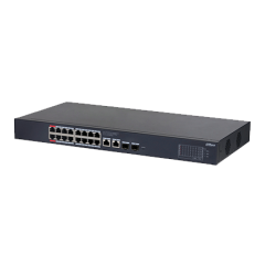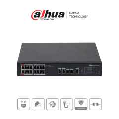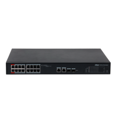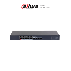DAHUA DH-PFS4218-16ET-240 - Switch PoE Administrable de 16 Puertos Ethernet/ 16 Puertos PoE/ 240 Watts Totales/ Interfaz Web/ Puerto 1 y 2 Soportan 90 Watts/ 2 Puertos SFP/ 2 Puertos Uplink/ PoE Watchdog/ Switching 8.8 Gbps/