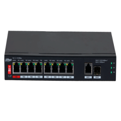 DAHUA PFS3110-8ET1GT1GF-96 -Switch PoE de 10 Puertos/ 8 Puertos Poe 10/100/ 1 Puerto SFP de 1000 Mbps/ 1 Puerto Uplink de 10/100/1000/ 96 Watts Totales/ Alimentación hasta 250 Mts/ Soporta PoE Whatchdog/ Puerto Rojo soporta IEEE 802.