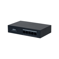 DAHUA DH-PFS3005-4GT-36 - Switch con 4 puertos Gigabit PoE y 1 puerto RJ45 10/100/1000 Mbps. Ofrece protección contra descargas eléctricas, ideal para alimentar dispositivos IP. Incluye fuente de poder integrada. #Anivdahua2
