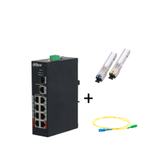 DAHUA PFS3110-8ET-96PAQFIB - Paquete de Switch Poe 8 Puertos RJ45 y un Puerto SFP + Par de transceptor fibra óptica SFP monomodo para 5km + Jumper 2 Metros