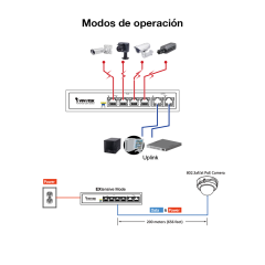 VIVOTEK AW-FET-060C-065 - Switch PoE no administrable con 4 puertos PoE FE RJ45, 2 puertos FE RJ45, 2 puertos Modo Extendido hasta 200m, 30W por puerto, 60W totales, 1.2 Gbps y protección 4KV