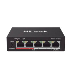 Switch PoE+ / 4 Puertos 10/100 Mbps PoE+ (af / at) / 1 Puerto 10/100 Mbps Uplink / Modo Extendido hasta 250 Metros / 35 Watts -