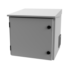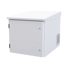 Gabinete para Exterior con Ventiladores y Termostato de 9 Unidades. Ideal para UPS. Características principales Fabricado en lámina de acero rolado en frío calibre 18. Pintura electrostática color blanco.