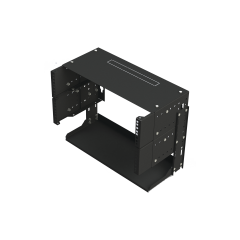 Características principales La charola de acero sólido de doble cara se monta en los rieles frontales y trasera de un rack abierto de telecomunicaciones.