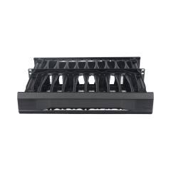 Este administrador de cables cuenta con postes terminales resistentes, dedos en forma de flecha y montaje sin herramientas para enrutar fácilmente cables de datos de cobre y fibra horizontalmente en formato estándar de 19 pulgadas.
