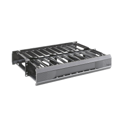 Este administrador de cables cuenta con postes terminales resistentes, dedos en forma de flecha y montaje sin herramientas para enrutar fácilmente cables de datos de cobre y fibra horizontalmente en formato estándar de 19 pulgadas.