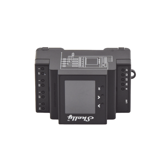 Relay profesional de 4 canales con conexión Wi-Fi, LAN y Bluetooth, apto para domótica e instalaciones con control remoto y gestión precisa de la energía. Montable en riel DIN dentro de una caja de interruptores. Funciones de seguridad mejoradas y compatible con las plataformas de domótica más utilizadas