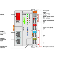 WAGO modelo: 750-363El acoplador de bus de campo EtherNet/IP 750-363 de cuarta generación ECO permite la integración del sistema modular WAGO-I/O-SYSTEM en redes industriales EtherNet/IP.