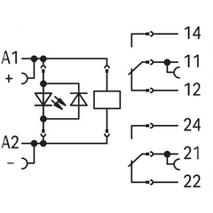WAGO modelo: 788-304Módulo con relé de 24 VCC diseñado para aplicaciones de automatización industrial y control eléctrico.