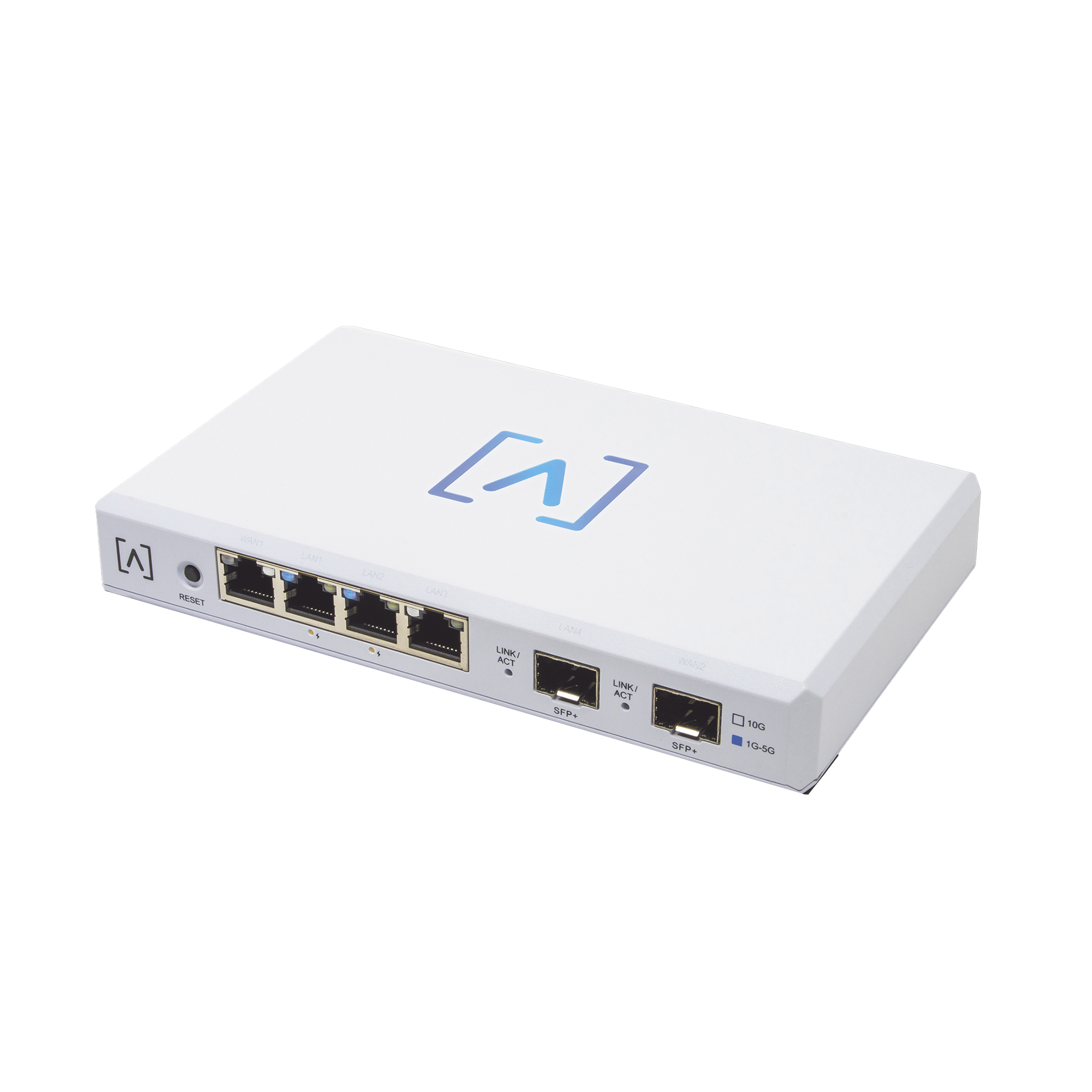 Route10 también ofrece dos puertos SFP+ para conexiones de fibra o cobre de alta capacidad de 1 Gbps, 2,5 Gbps, 5 Gbps o 10 Gbps.