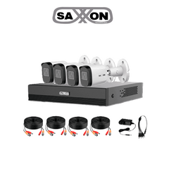 SAXXON SUA-KIT/XVR1E04-I/4-B20M-0280B-Kit de 4Canales HDCVI 1080P/4 Cámaras B20M de 2.8mm con Campo de Visión de Hasta 100°/Grabador Soporta Hasta 5 Canales IP yDetección de Movimiento Inteligente/Cámaras Fabricadas en Metal deAlta Duración