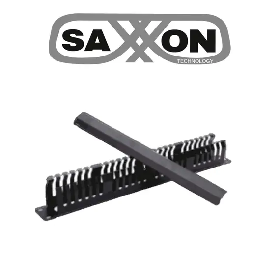 SAXXON CO-48P - Organizador de cables horizontal con tapa para rack de19" / 1U / 48 posiciones / Color Negro / Tapa y Base Metálica