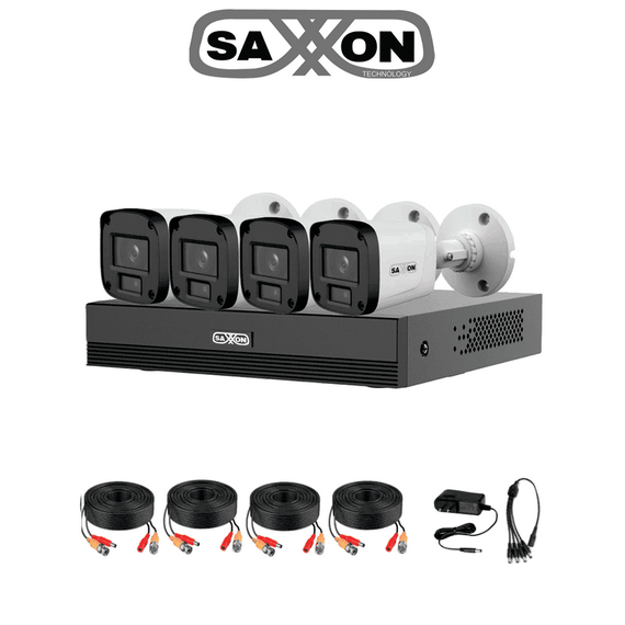 SAXXON SUA-KIT/XVR1E04-I/4-B20P-0280B - Kit 4 Canales HDCVI 1080P/ 4 Cámaras B20P 2.8mm Apertura Hasta 100°/ Grabador Soporta Hasta 5 Canales IP y Detección de Movimiento Inteligente/ Policarbonato/