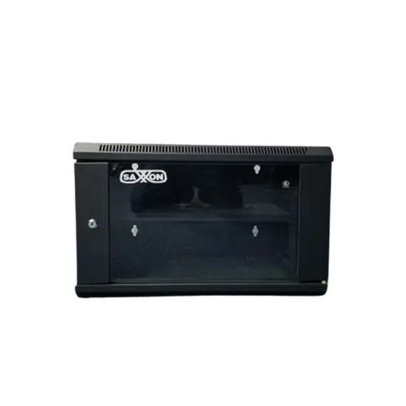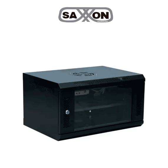 SAXXON SXR6U5406A - Gabinete de Pared Negro / 6UR / Puerta de Vidrio Templado / Dimensiones útiles: Alto 37 x ancho 53 x profundidad 40 cm SX-R6U-5406A