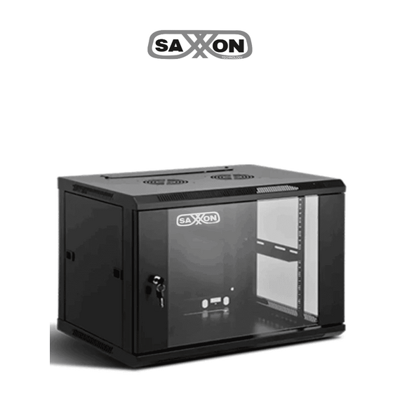 SAXXON SXR6U6406S - Gabinete de Pared Negro / 6UR / Puerta de Vidrio Templado / Alto 35 cm / Ancho 60 cm / Profundidad 45 cm / SX-R6U-6406S