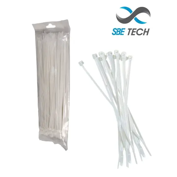 SBE TECH CN48X450 - Cincho sujetacable 4.8x450 mm color blanco, bolsa con 100 piezas, nylon. SBE-4.8X450
