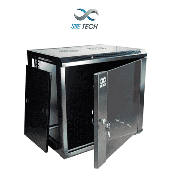 SBE TECH GNLPAR16URP - Gabinete de pared de 16UR, 600x600x850 mm con paneles laterales desmontables, puerta delantera de cristal templado de 5mm y puerta trasera de acero SPCC de 1.2mm.