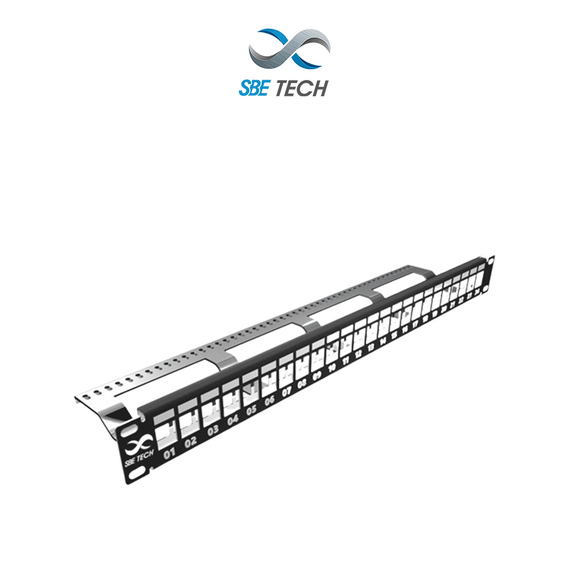 SBE TECH SBE-PMODS - Panel de parcheo modular de 24 puertos, blindado, compatible con jacks Cat 5, Cat 6 y Cat 6A SBE-PMODS