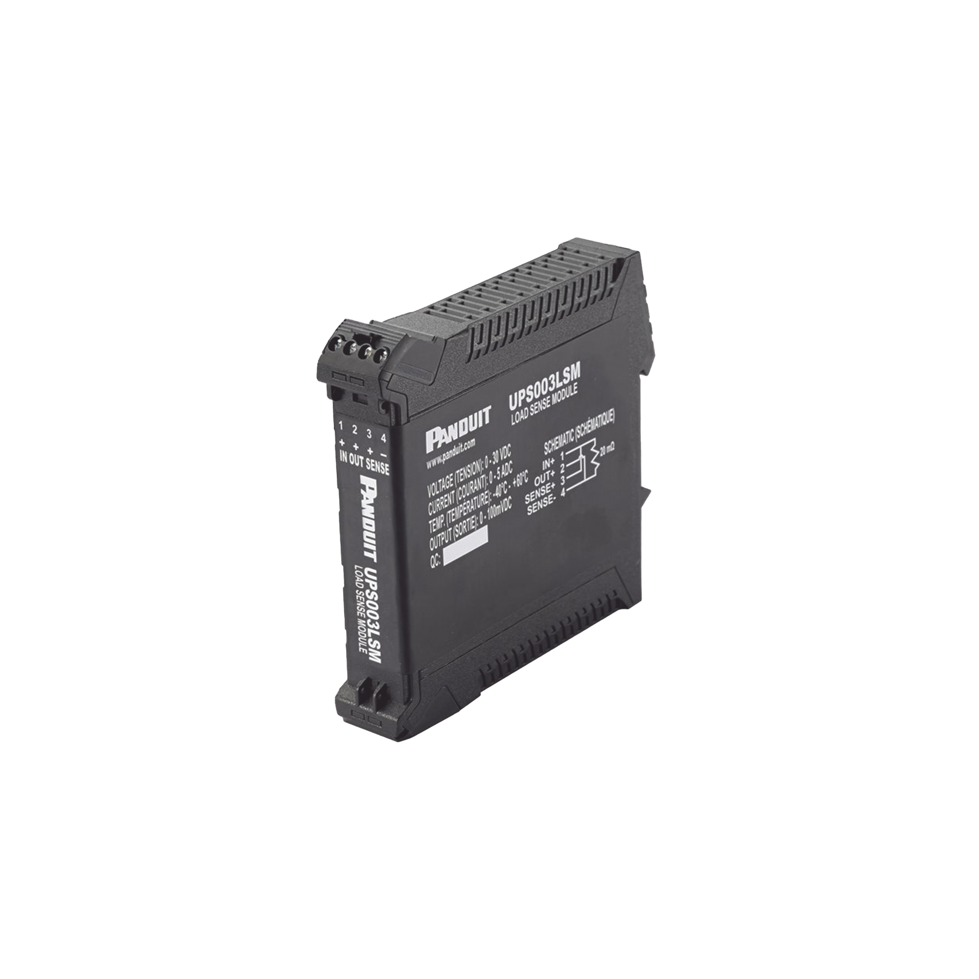 Este módulo de sensado se utiliza exclusivamente en sistemas de alimentación ininterrumpida Panduit para medir el consumo de corriente en la fuente primaria. Al conectarse a la línea de alimentación principal de 24 VDC, permite al UPS calcular con precisión el tiempo de respaldo disponible cuando se requiere el uso de energía de emergencia.