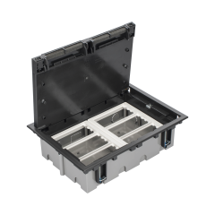 La Caja de Suelo de Simon es la solución ideal para instalaciones en piso falso, diseñada para alojar mecanismos de voz, datos, multimedia o eléctricos en ambientes corporativos, comerciales y centros de datos.