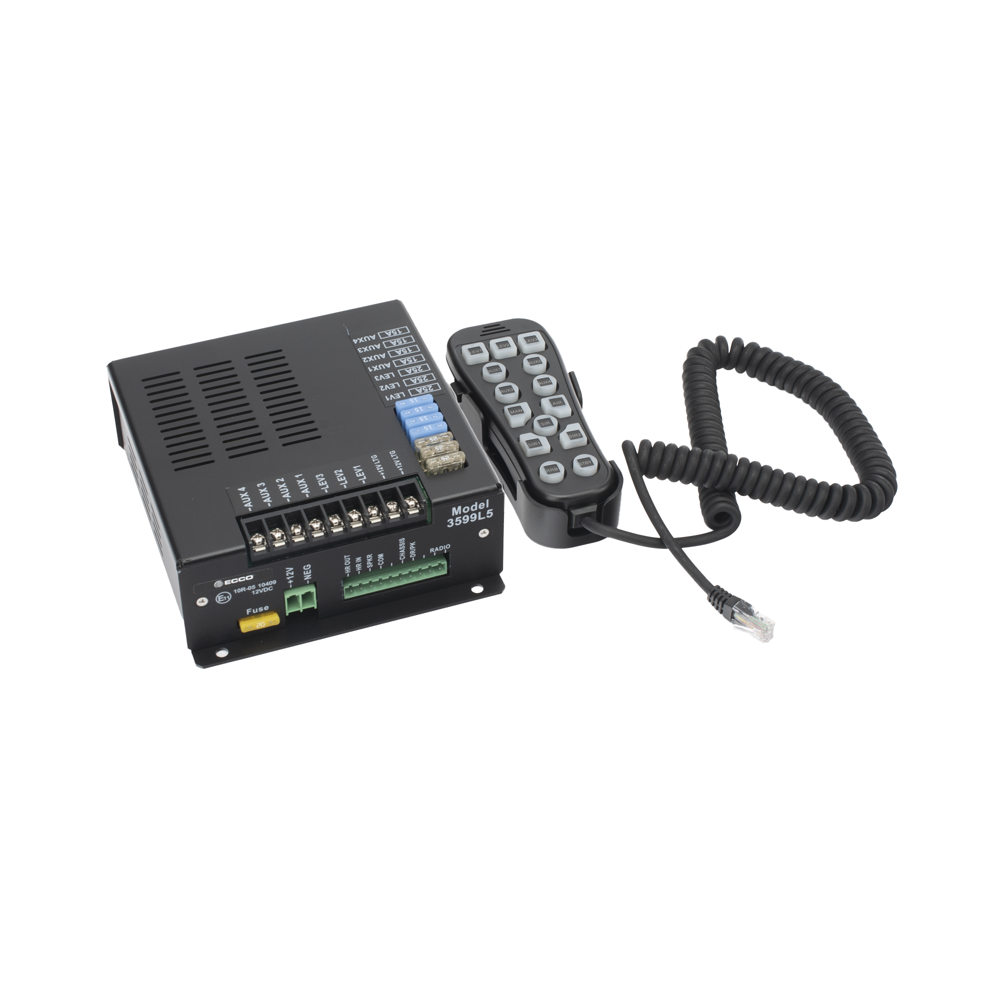 Sistema de sirena para vehículos de emergencia encubiertos o tradicionales, brinda a los usuarios un control total de la sirena, las luces y un micrófono de dirección pública, todo en un controlador retro iluminado de mano. Las características incluyen retransmisión de radio, encendido instantáneo, stand-by, desplazamiento de sirena, tonos de sirena programables con botón y amplificador de sirena Banshee® compatible para funciones adicionales.