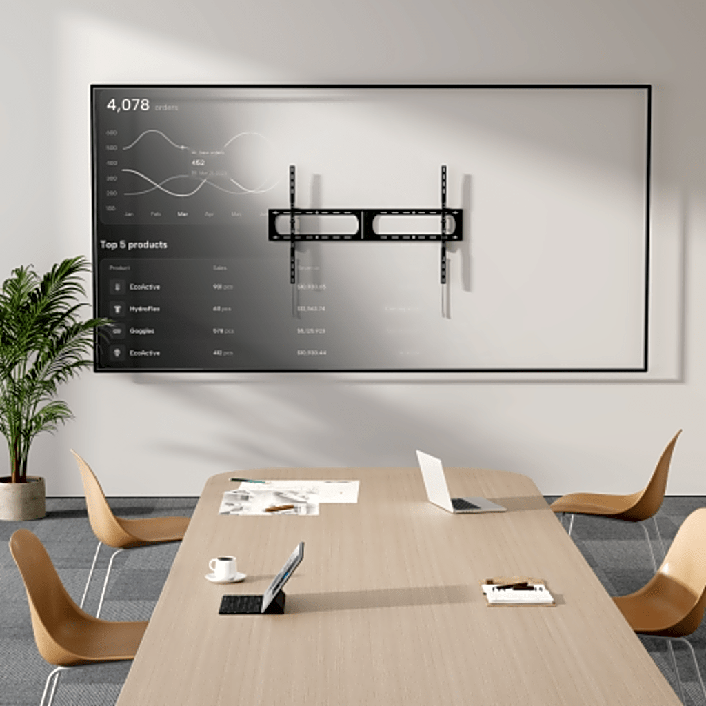 Maximiza el espacio en tu comercio u oficina con nuestros montajes de pared. Este modelo está diseñado para pantallas de gran tamaño, admitiendo paneles de hasta 140" y 125 kg de peso. Ya sea para crear un cine en casa inmersivo o para uso profesional exigente, este producto garantiza un rendimiento fiable y robusto.
