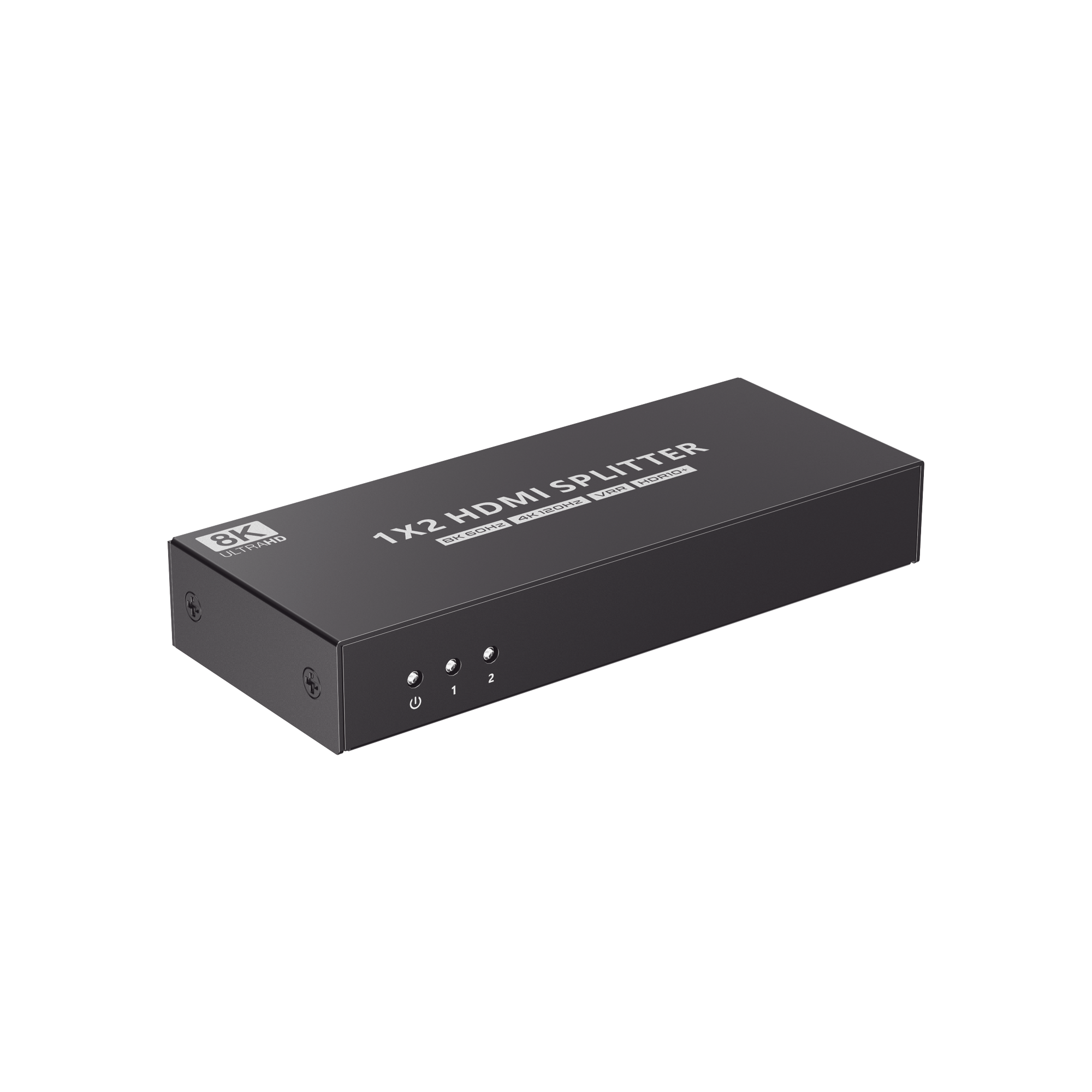 Este producto es un divisor HDMI de alta calidad que permite dividir una señal de entrada HDMI en dos salidas HDMI. Cumple con el estándar HDMI2.1 más reciente, lo que garantiza una transmisión de vídeo de alta calidad con resoluciones de hasta 8K @ 60Hz/4K @ 120Hz/1080p @ 240Hz. Además, cuenta con HDR10+, Dolby Vision y frecuencia de actualización variable (VRR) para una mejor calidad de imagen y una visualización más suave. Este dispositivo es ideal para su uso en tiendas de TV, cines, publicidad exterior y entretenimiento en el hogar.