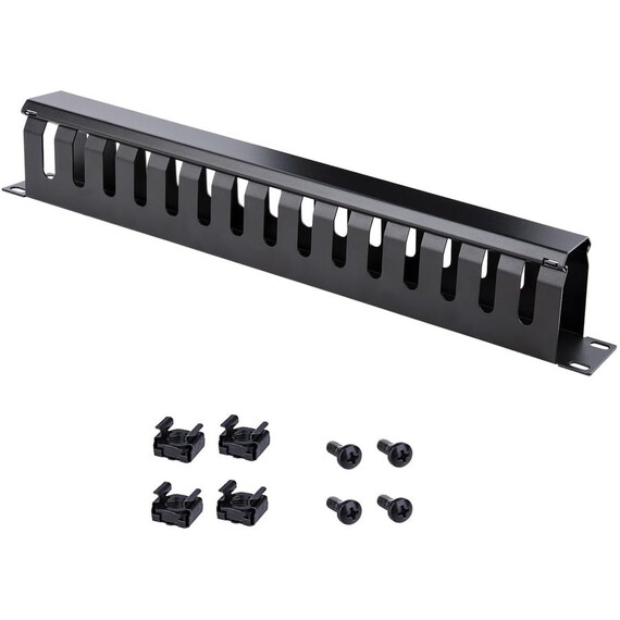 StarTech.com Panel Canaleta Horizontal de 1U con Cubierta para Gestión de Cableado en Racks y Perforaciones Laterales