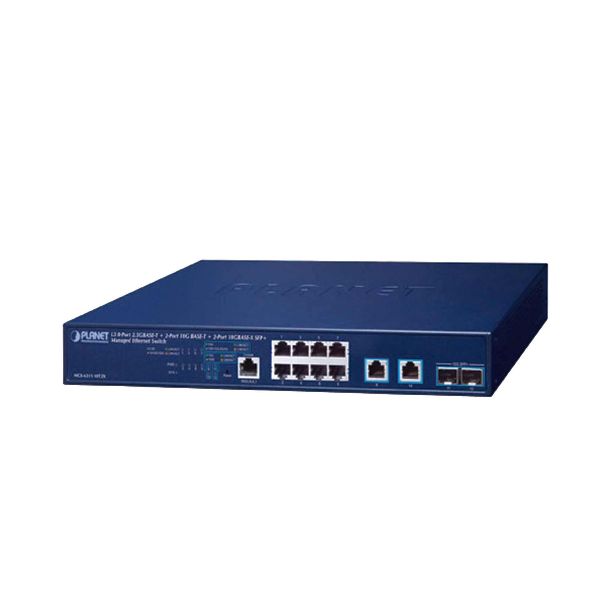 MGS-6311-10T2X es un Switch multigigabit administrable Capa 3 que proporciona datos de 2,5 Gbps a través de cables UTP, diseñado para la demanda de equipos de red requeridos de gran ancho de banda, como AP inalámbrico Wi-Fi 6 802.11ax, NAS y estación de trabajo. y aquellos con interfaces 2.5GBASE-T. Cuenta con 8 puertos de cobre 10/100/1000/2500BASE-T , 2 puertos de cobre 100/1G/2.5G/5G/10GBASE-T y 2 puertos de fibra 1G/10GBASE-X SFP+ adicionales que están diseñados de manera flexible para extender la distancia de conexión.