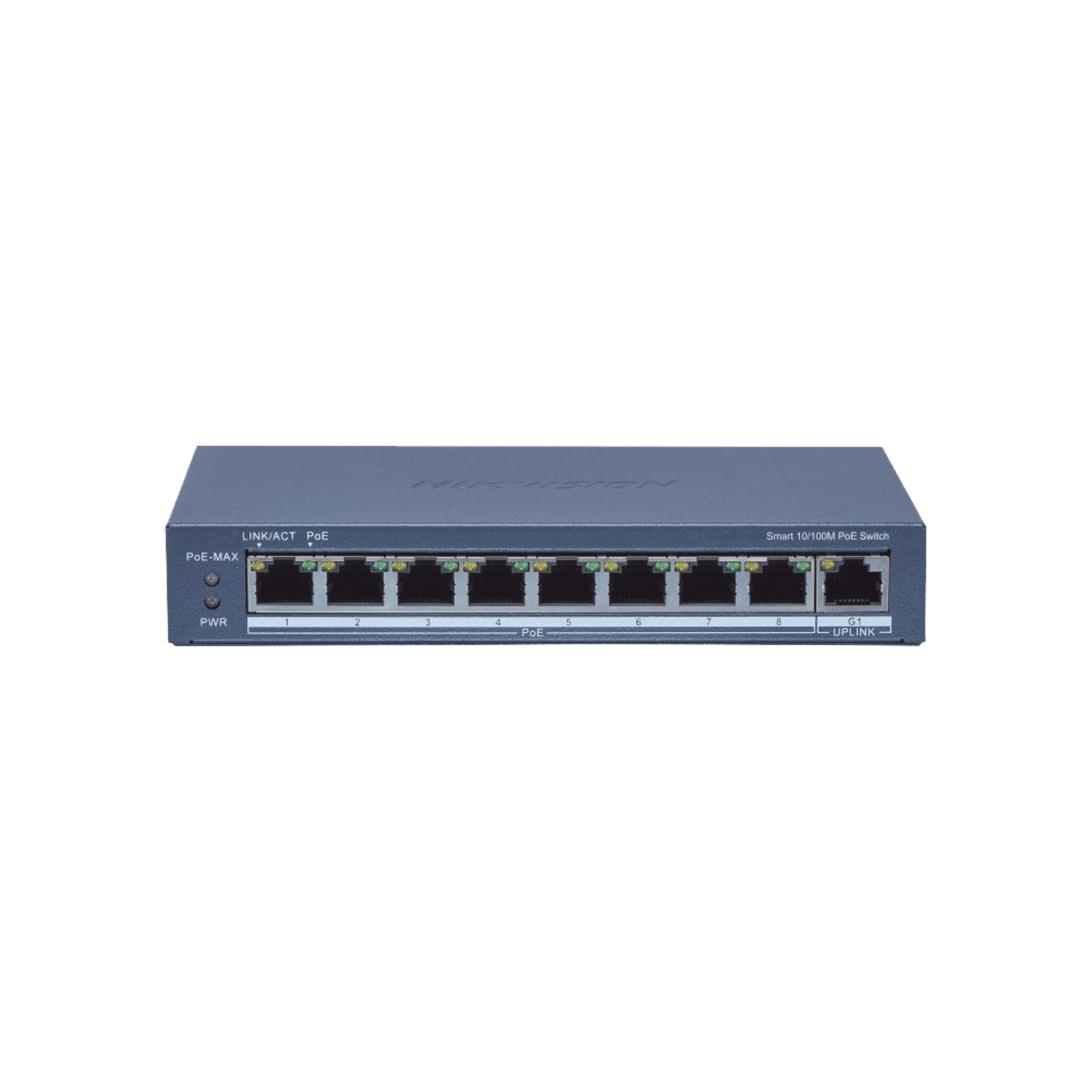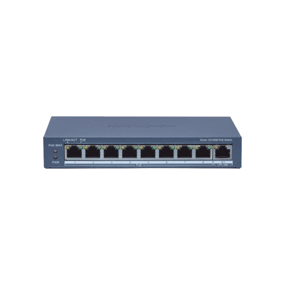 Switch Administrable PoE+ / 8 puertos 100 Mbps PoE+ / 1 puerto 1000 Mbps de Uplink / PoE hasta 300 Metros / Conexión Remota desde Hik-ParnerPro / 110 W DS-3E1309P-EI(B)