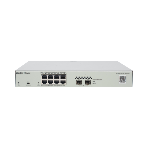 Switch Administrable PoE Capa 2 con 8 puertos Gigabit PoE 802.3af/at + 2 SFP para fibra 1Gb, gestión gratuita desde la nube, 125w RG-NBS3100-8GT2SFP-P-V2