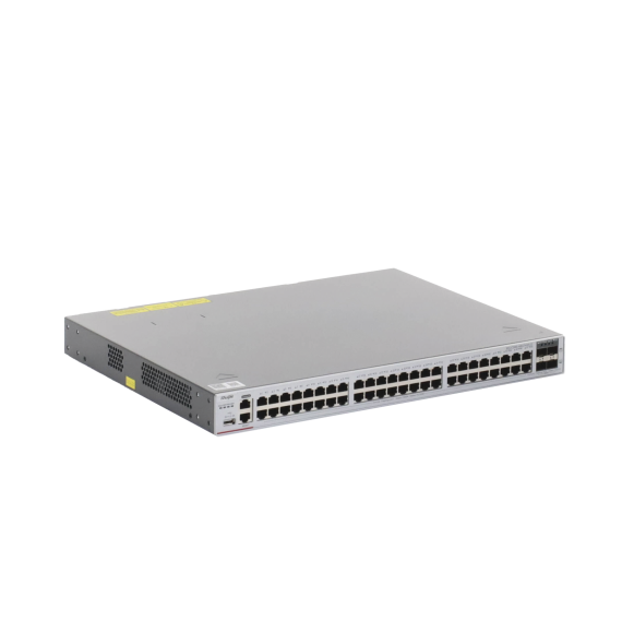 - Puerto de servicio: 48 puertos eléctricos de 10/100/1000 Mbps con negociación automática, 4 puertos SFP+ 1G/10G y dos ranuras de alimentación modulares