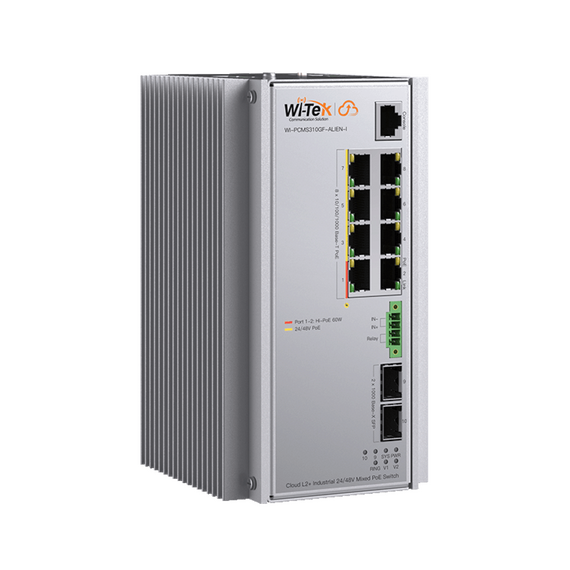 Switch Industrial Administrable Gigabit con 2 Puertos PoE bt + 6 Puertos PoE af/at o 24 V Pasivo + 2 SFP Gigabit, 240 W WI-PCMS310GF-ALIEN-I