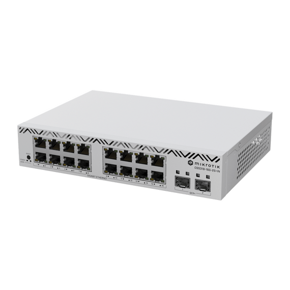 Switch MikroTik con 16 Puertos Gigabit Ethernet / 2 Puertos SFP+ 10G / Filtrado MAC y VLANs / SwOS Configuración Web CSS318-16G-2S+IN