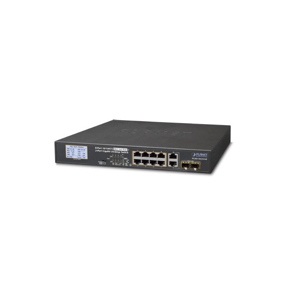 Switch PoE+ / Distancia 250 Metros / 8 Puertos + 2 Combo TP/SFP Gigabit y Pantalla LCD Para Monitoreo FGSD-1022VHP