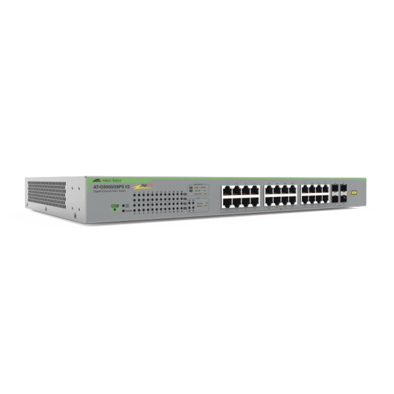 Switch PoE+ Gigabit WebSmart de 24 puertos 10/100/1000 Mbps + 4 puertos SFP Gigabit, 185 W, Version 2 AT-GS950/28PS-V2-10