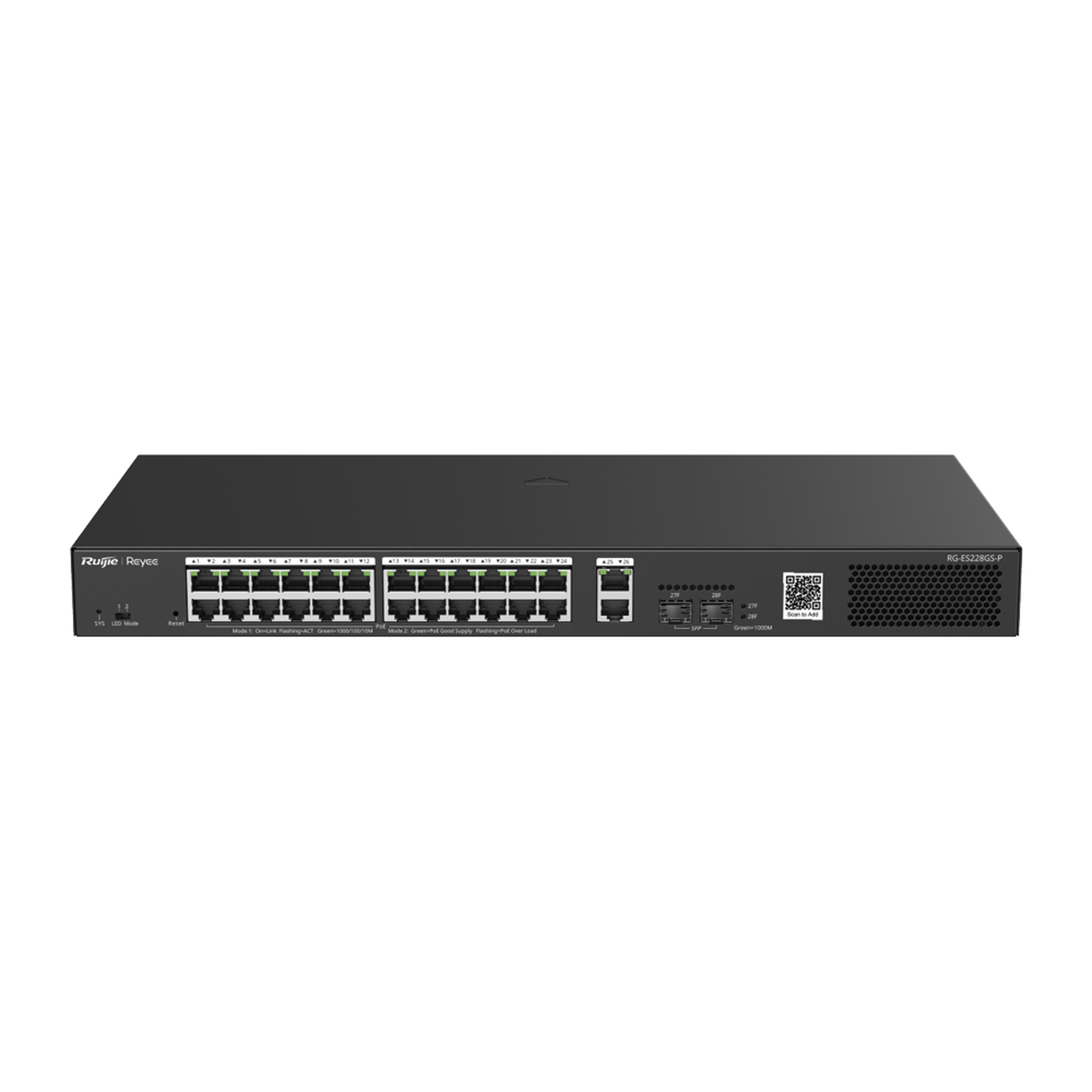 Switch Smart PoE con 24 puertos Gigabit PoE 802.3af/at + 2 SFP para fibra 1Gb, gestión gratuita desde la nube, 370w RG-ES228GS-P