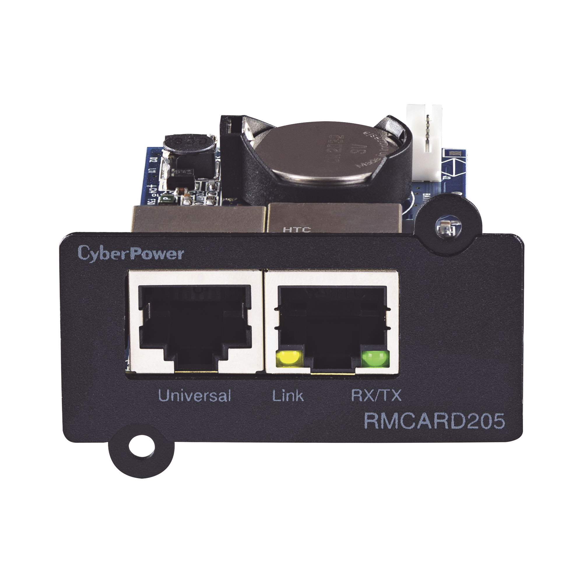 CyberPower RMCARD205 es un complemento de administración opcional para el UPS serie CyberPower específico. Al insertar la tarjeta en la ranura de red SNMP / HTTP del UPS, los usuarios pueden monitorear y controlar de forma remota los dispositivos en un back office, sala de servidores o centro de datos mediante navegadores web estándar, sistema de gestión de red (NMS) o interfaz de línea de comandos (SSH y Telnet) en su red. También pueden realizar tareas de gestión, incluidos paros programadas, arranques y reinicios.