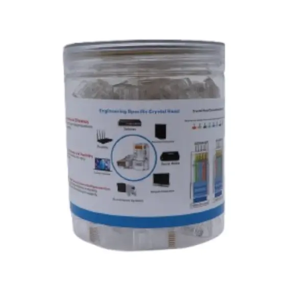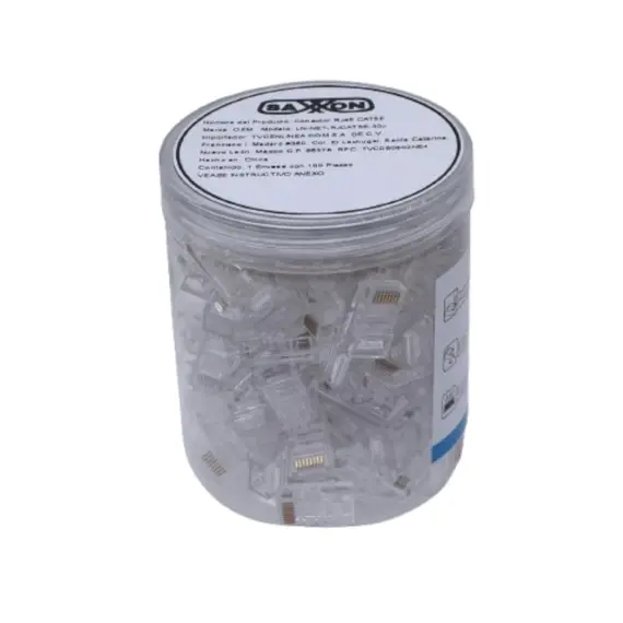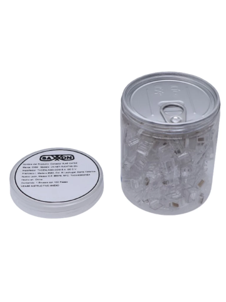 TCE LN-NET-RJCAT5E-30u - Bote con 100 Plugs RJ45 Cat5e, Sin Blindaje, Chapado en Oro 30 Micras, Conector Modular para Redes Ethernet y Cableado Estructurado LN-NET-RJCAT5E-30u