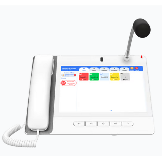 Teléfono IP Color Blanco Android 9.0 Empresarial para voceo 20 líneas SIP, pantalla táctil, Wi-Fi y Bluetooth, PoE, Voceo/ Musica por Multicast, puertos Gigabit, Sofware de Enfermeria A320IW