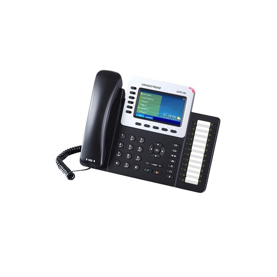 El GXP2160 es un avanzado teléfono SIP de categoría empresarial con 6 líneas, pantalla LCD color de 4.3”, 5 teclas programables sensibles al contexto, 24 teclas programables de extensión BLF, doble puerto de red Gigabit, PoE y Bluetooth integrados, conferencia de voz de 5 vías y Electronic Hook Switch (EHS). El GXP2160 ofrece calidad de audio superior en el auricular y el altavoz, recursos telefónicos valiosos y de última generación e información personalizada y servicio de aplicación personalizable.